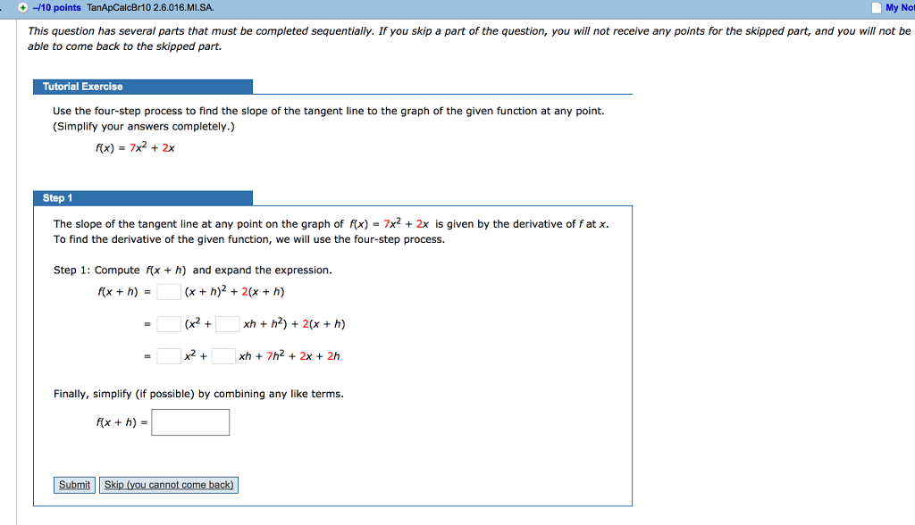 (simplify your answers completely.) f(x) = 10 step 1: 11eaa8b1_dc3b_1a25_b1b6_4520e735e740_tb6026_11 a) 11eaa8b1_dc3b_4136_b1b6_f14e81acbeb6_tb6026_11 b) 11eaa8b1_dc3b_4137_b1b6_85454be0d8b9_tb6026_11 c). 0) is the slope of the tangent line at (x 0;y 0)).