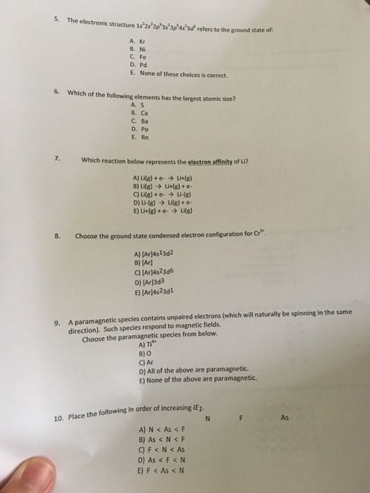 Solved 11) Which Reaction Below Represents The Second Ele from www.chegg.com