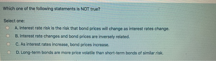 One Of The Following Statements Is Not True Which One. Interest rate risk is the risk that bond prices will change as interest rates change. Truth, freedom and dignity are more important than happiness for the largest number of people.