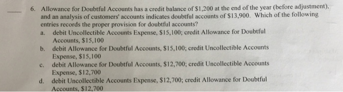 Solved Allowance For Doubtful Accounts Has A Credit Balan from www.chegg.com
