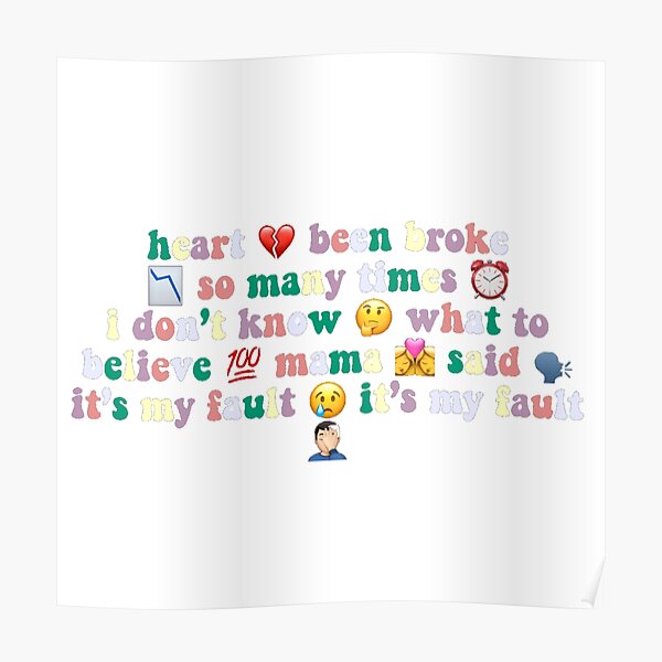 source: www.redbubble.com All orders are custom made. Heart π been broke π so many times ⏰ i don’t know π€ what to believe π― mama π© ️ππ© said π£ it’s my fault π’ it’s my fault π€¦π»♂️i wear my heart ️ on my sleeve πͺ i think it’s best ππ» i put my heart ️ on ice π§.