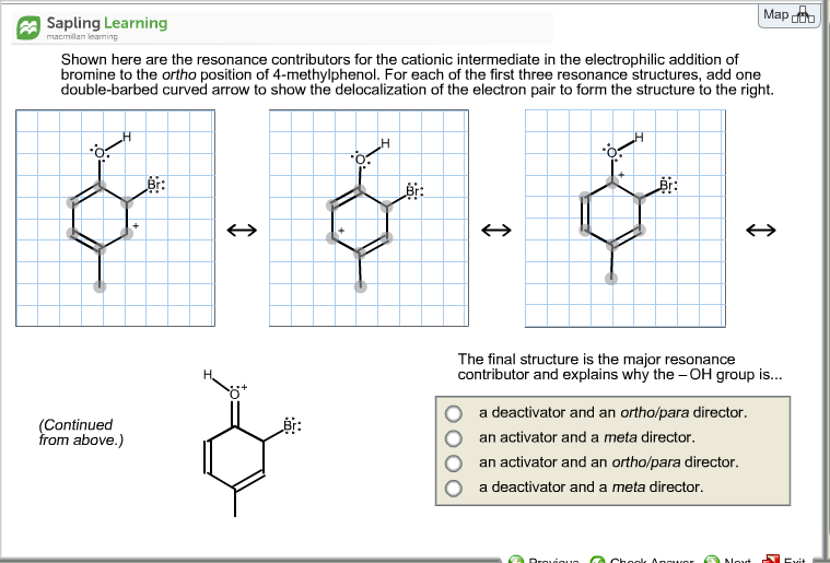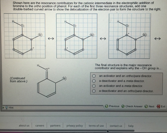 Shown here are the resonance contributors tor the catonic intermediate in the electrophilic addition of bromine to the ortho posi Shown here are the resonance contributors for the cationic intermediate in the electrophilic addition of bromine to the ortho position of phenol. View fe 12f q.pdf from cf 3 at university of michigan.