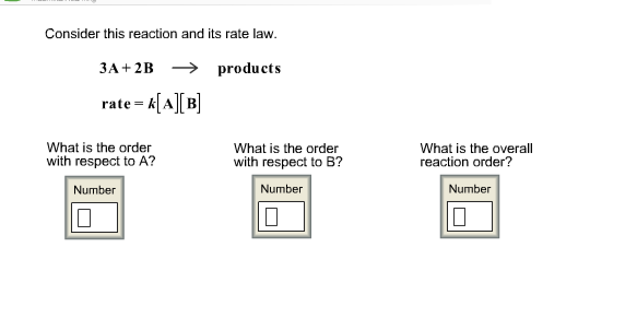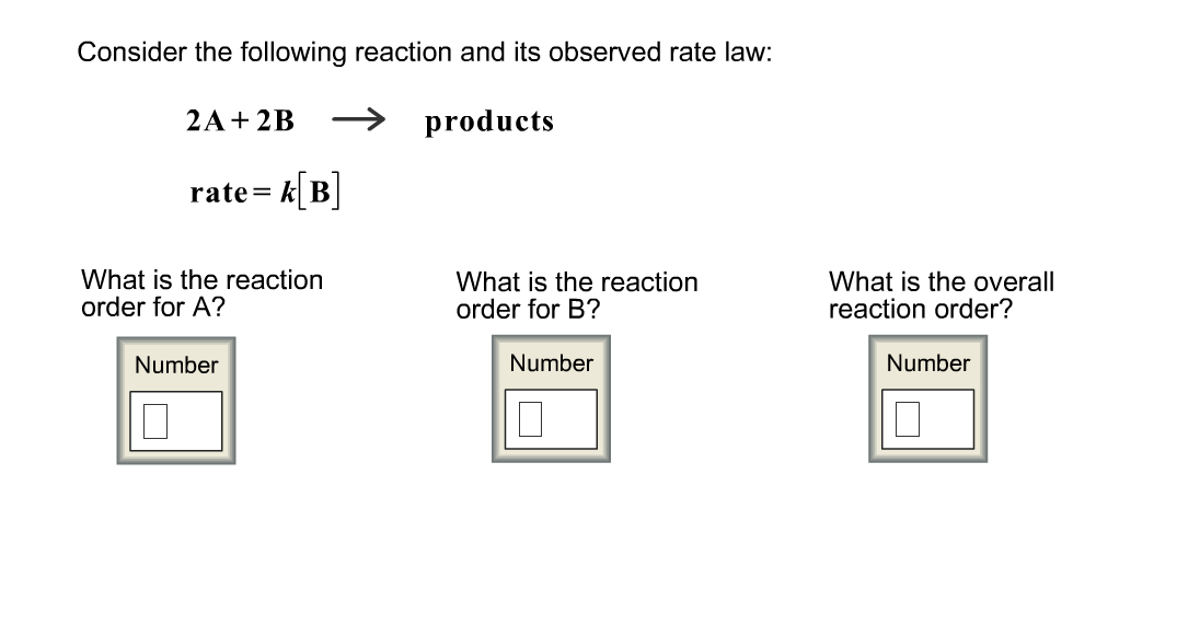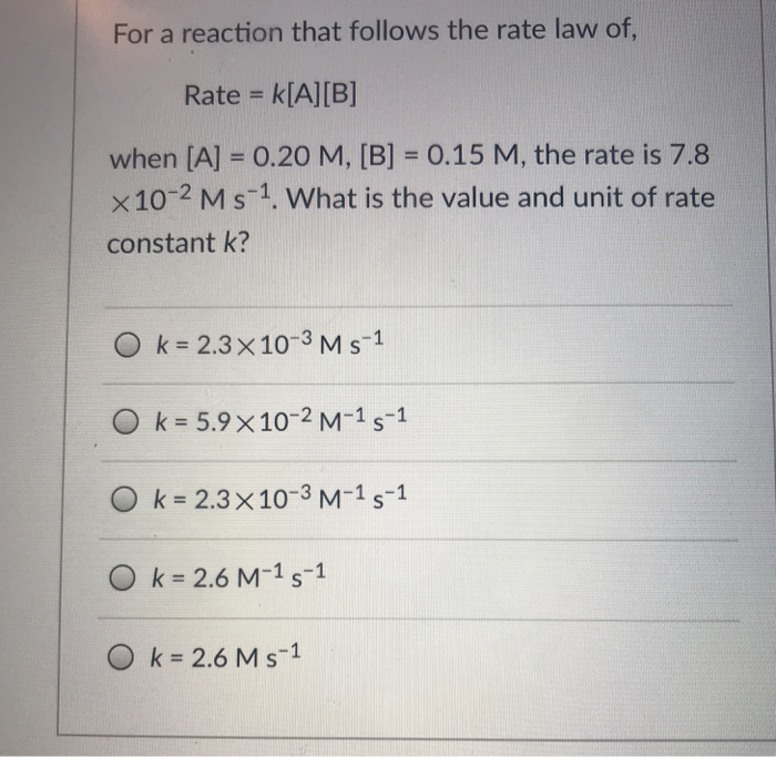 Final exam practice test (harder than the actual acs) general chemistry ii sample test bank according to the definition, which chemical species can function Equations 3.29 and 3.30 indicate that the concentrations in the rate law are the concentrations of reacting chemical species at any specific point in time during the reaction. 14) the rate law for a reaction is rate = k [a][b]2 which one of the following statements is false?
