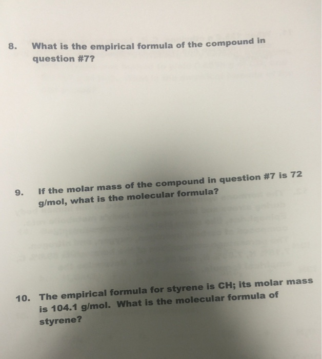 Solved 8. What I S The Empirical Formula Of The Compound from www.chegg.com