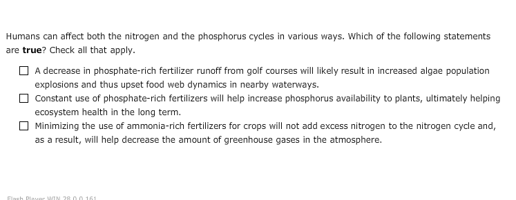 Which Of The Following Statements About The Phosphorus Cycle Is False. Elevated levels of phosphorus in aquatic ecosystems is always beneficial. Which of the following isotopes has the.
