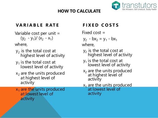 What is the high low method formula? It is worth noting that it is still assessed at l3/advanced so it’s relevant to everyone studying costing. High low method provides an easy way to split fixed and variable components of combined costs using the following formula.