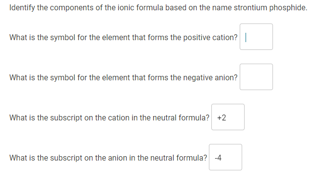 1 📌📌📌 question identify the components of the ionic formula based on the name strontium phosphide. The chemical formula of lithium phosphide is li3p. Strontium has physical and chemical properties similar to those of its two vertical neighbors in the periodic table, calcium.